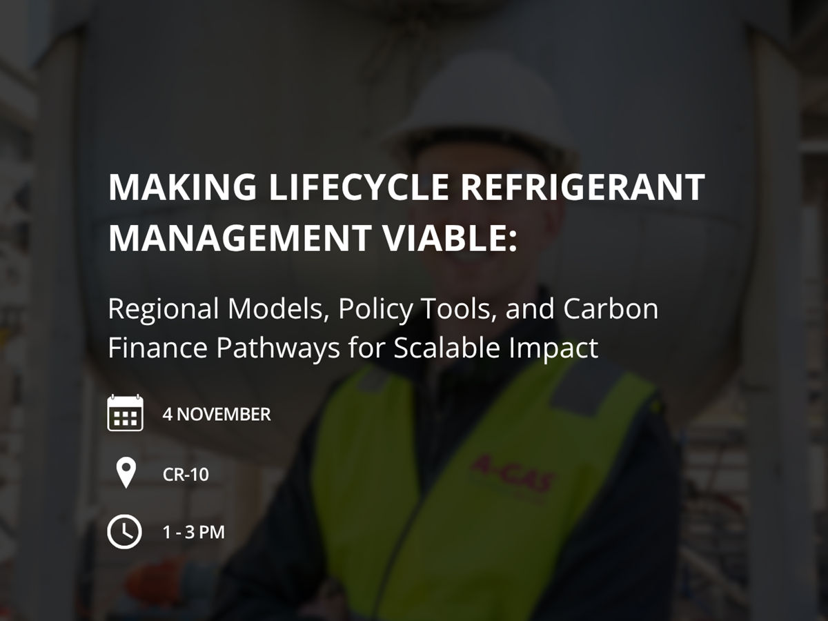 During the session, A-Gas will showcase successful regional models from Africa, Asia and Europe that illustrate how Lifecycle Refrigerant Management (LRM) hubs- focused on recovery, reclamation and destruction- can scale rapidly with the right combination of targeted policy measures and finance support.
