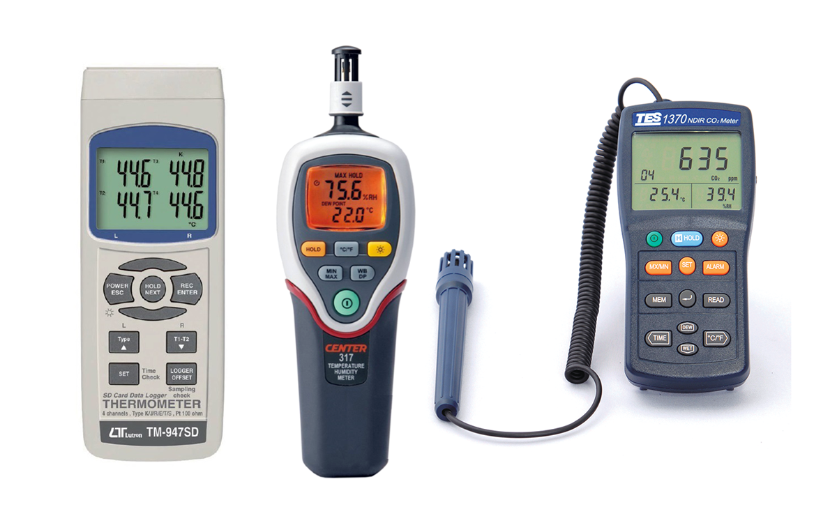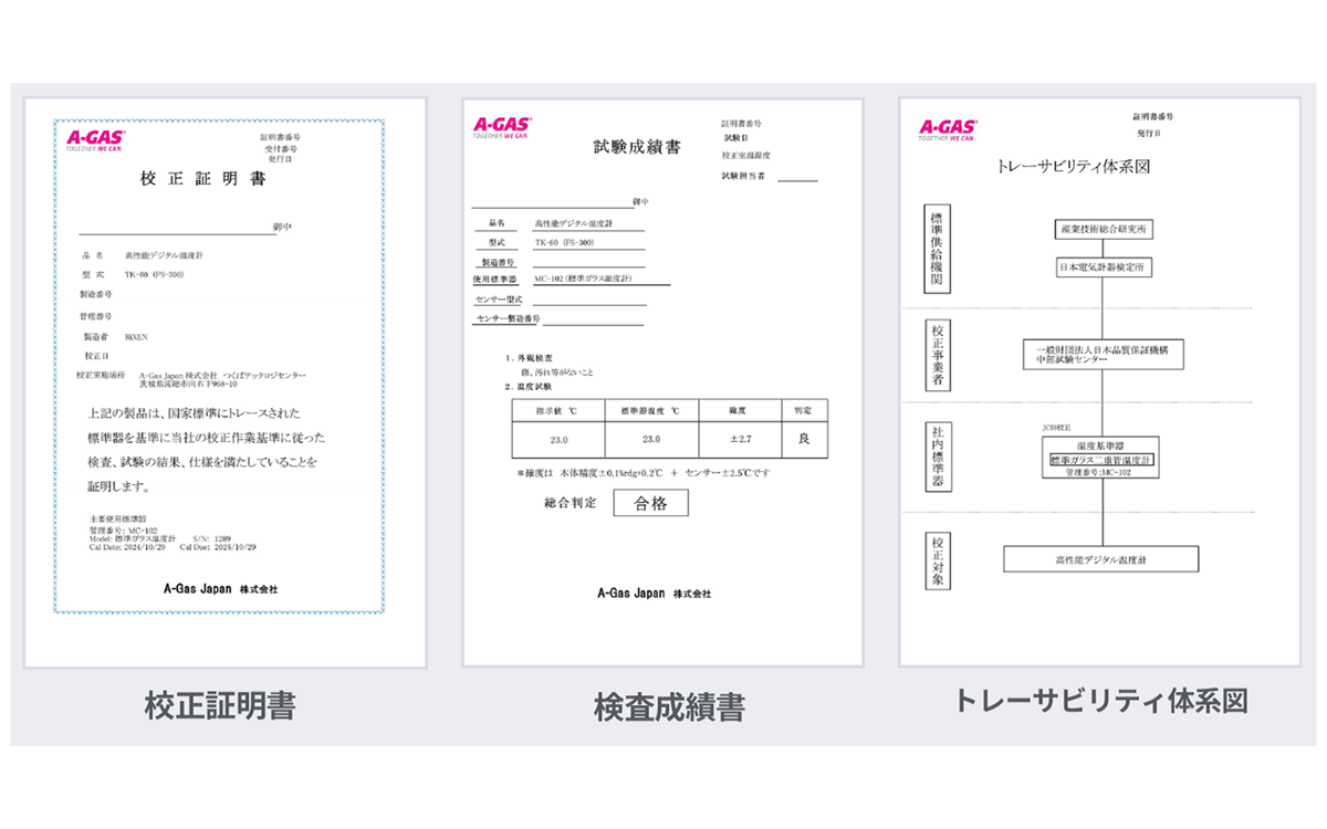 リークスタンダード・温度計・温湿度計・風速計・照度計・騒音計・CO2濃度計の校生も行っております。